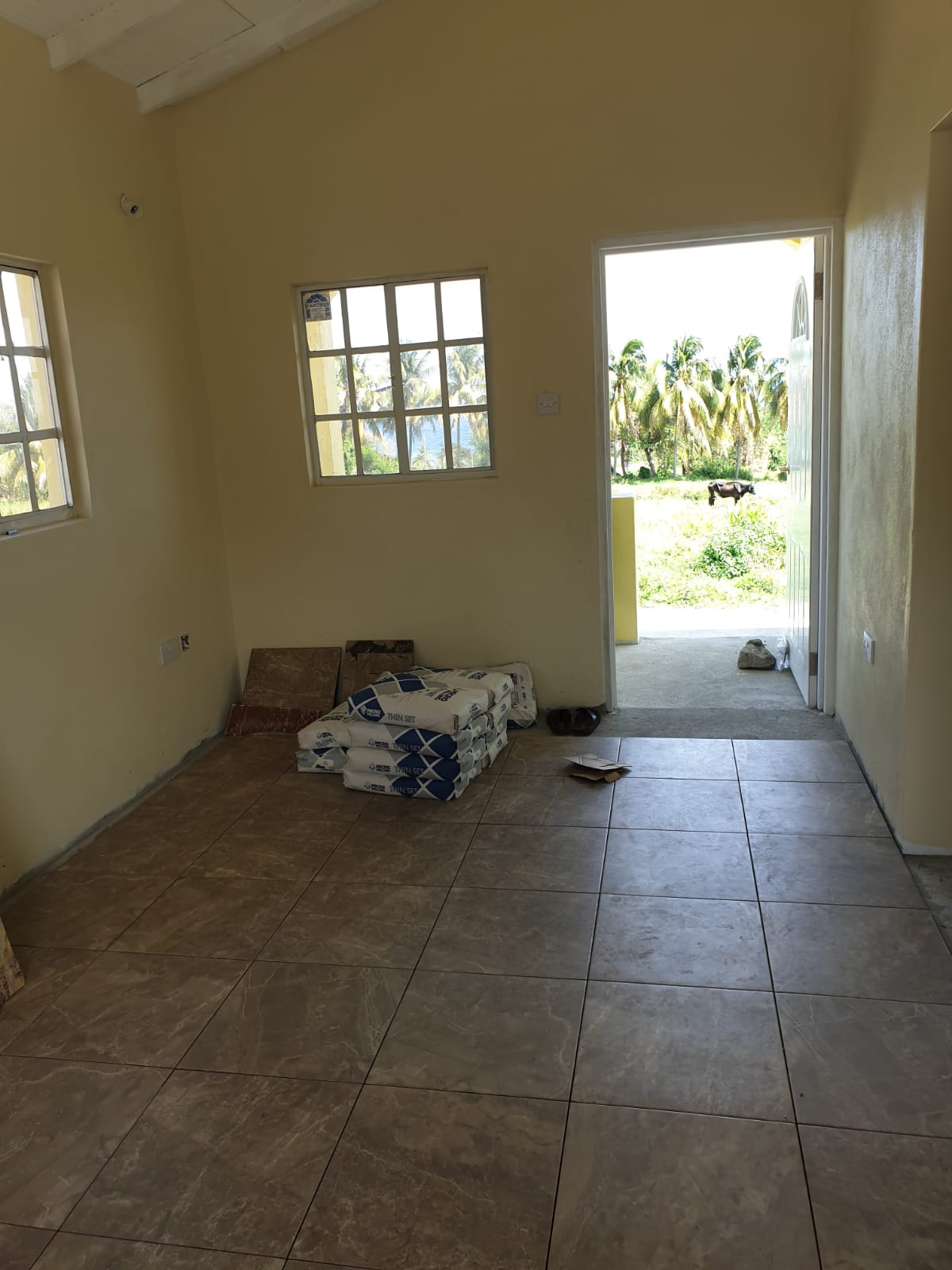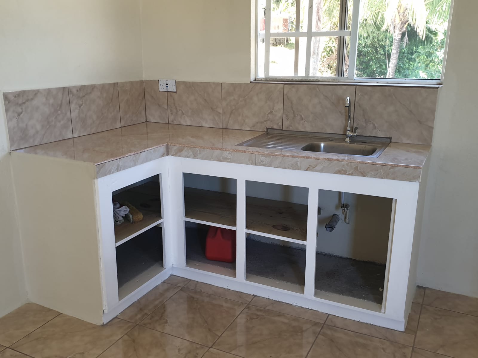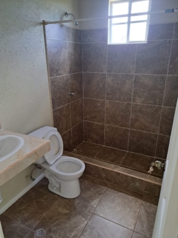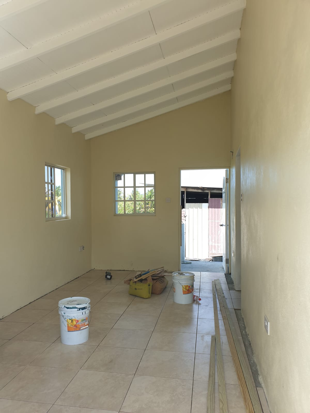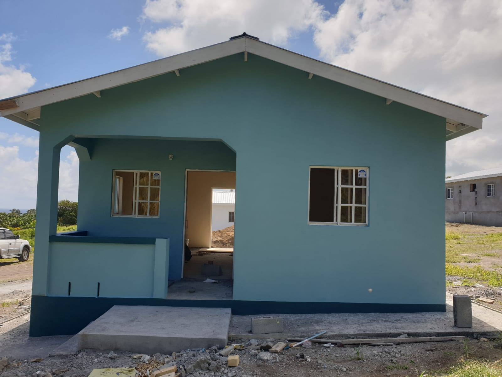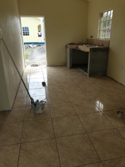 Most houses are completely painted with kitchen counters, tiling of floors, bathroom tiling and installation of sinks, cupboards and light fixtures in the final stages.