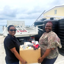 The tanks were presented to Dr. Idelia Ferdinand, Coordinator for Disaster Recovery at NEMO, to assist in restoring access to clean and safe water for affected households on Union Island, Mayreau and Canouan.